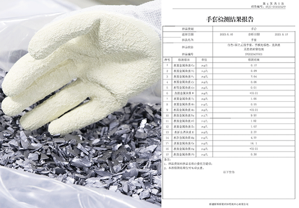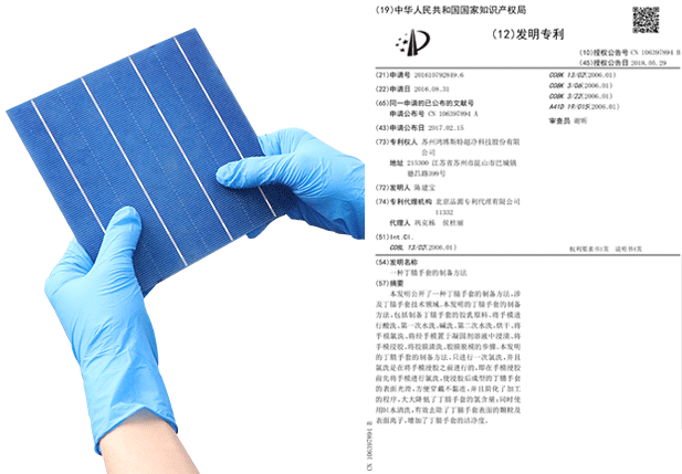 手套經(jīng)過特殊工藝處理,通過驗證將手套放置氮氣柜當中80H,手套接觸產(chǎn)品無任何氧化情況,經(jīng)權威機構(gòu)檢測氯元素及硫元素完全符合接觸電池片標準,且不會在電池片上面留下任何指印。